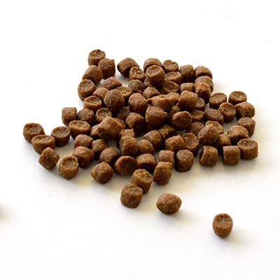 成分値 タンパク質:33%以上、脂肪:20%以上、繊維:5%以下、灰分:7%以下、水分:12%以下、カルシウム:1.5%以上、リン:1.1%以上、オメガ 6:2.7%以上、オメガ 3:1.0%以上